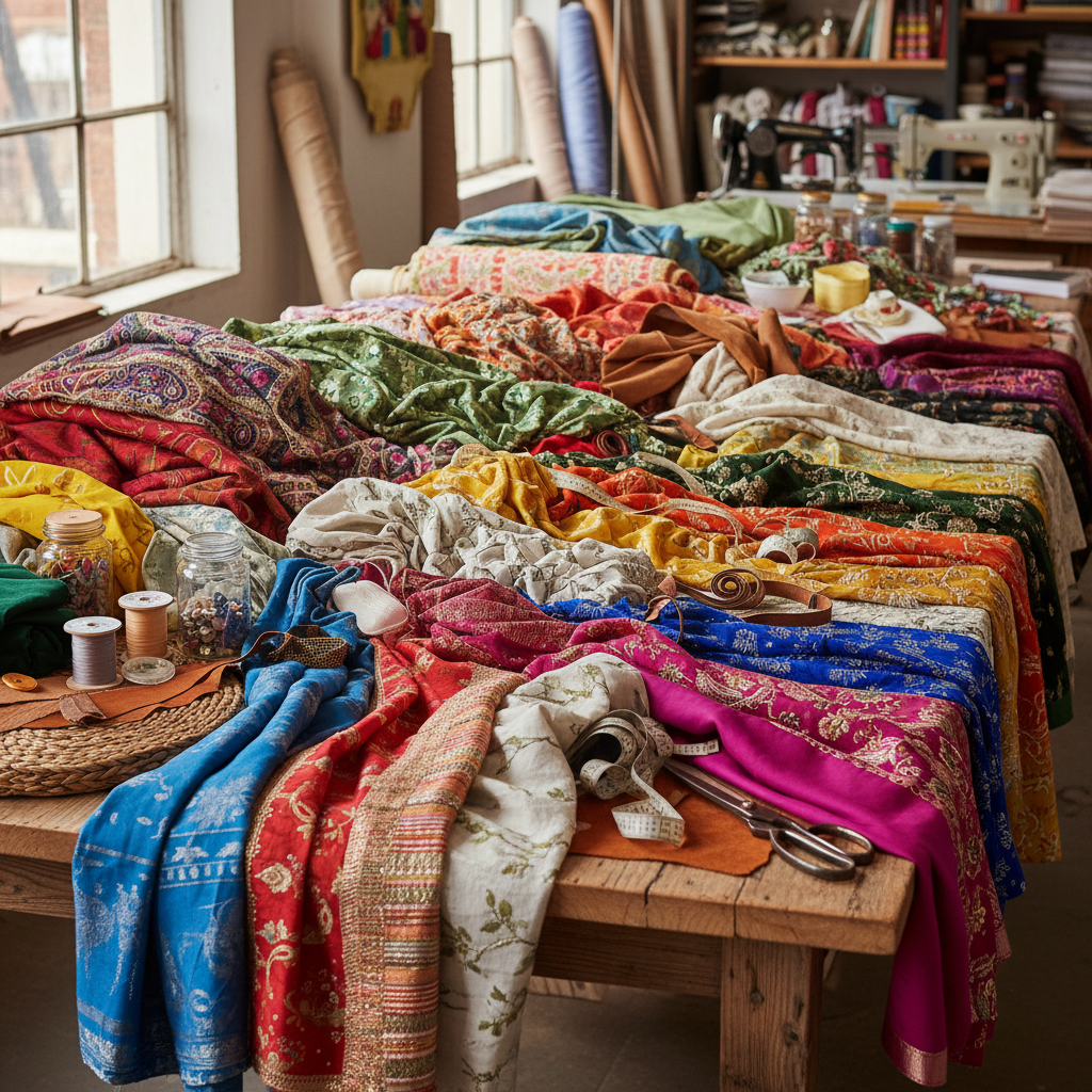 - Łączenie faktur i wzorów – np. wełna z jedwabiem, kratka z kwiatami.