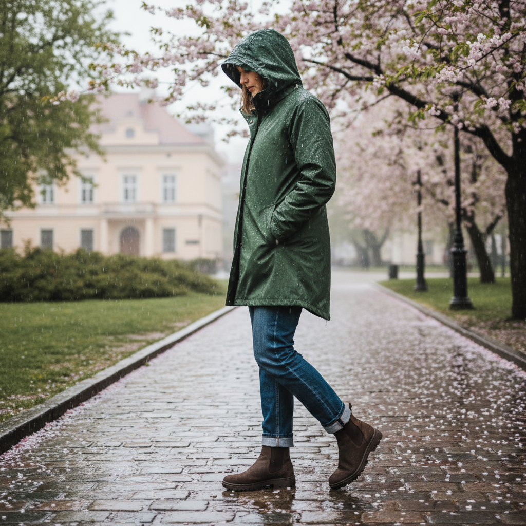 - Wierzchnia warstwa: Marynarka lub bomberka, opcjonalnie płaszcz z wodoodpornego materiału.