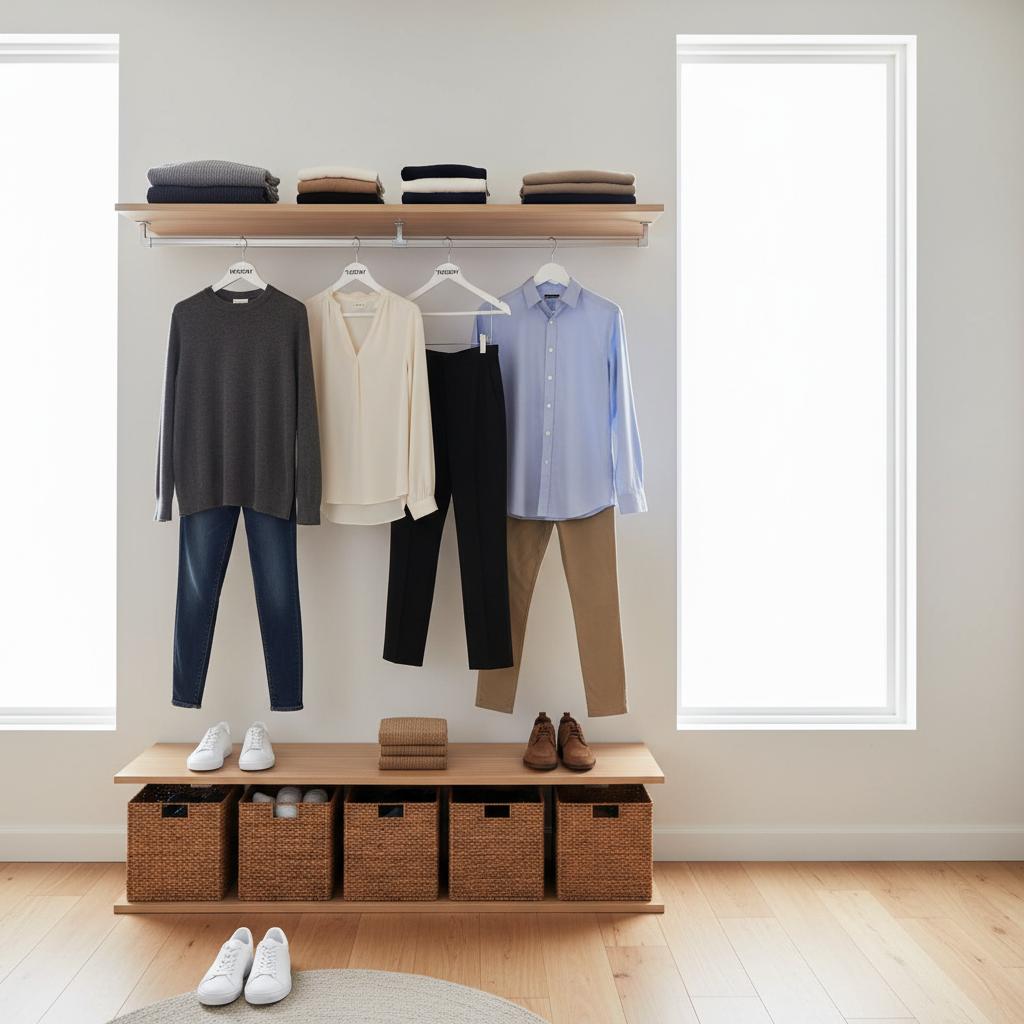 - Zorganizowana szafa kapsułowa – mniej znaczy szybciej.